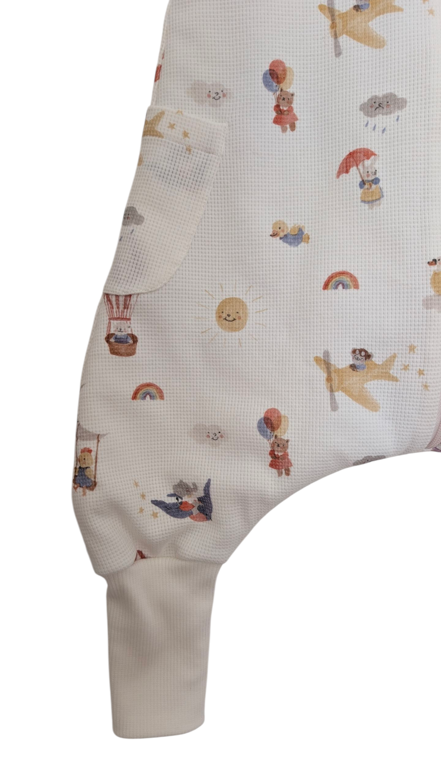Descrição: Saco de dormir com pernas para uma maior liberdade de movimentos, tornando-se assim perfeito tanto para a hora de dormir como para brincar, gatinhar ou andar por casa. Com bolso lateral. Punhos dobráveis para acompanhar o crescimento. Protetor de fecho no queixo e por dentro do saco ao longo de todo o fecho, para uma maior proteção.